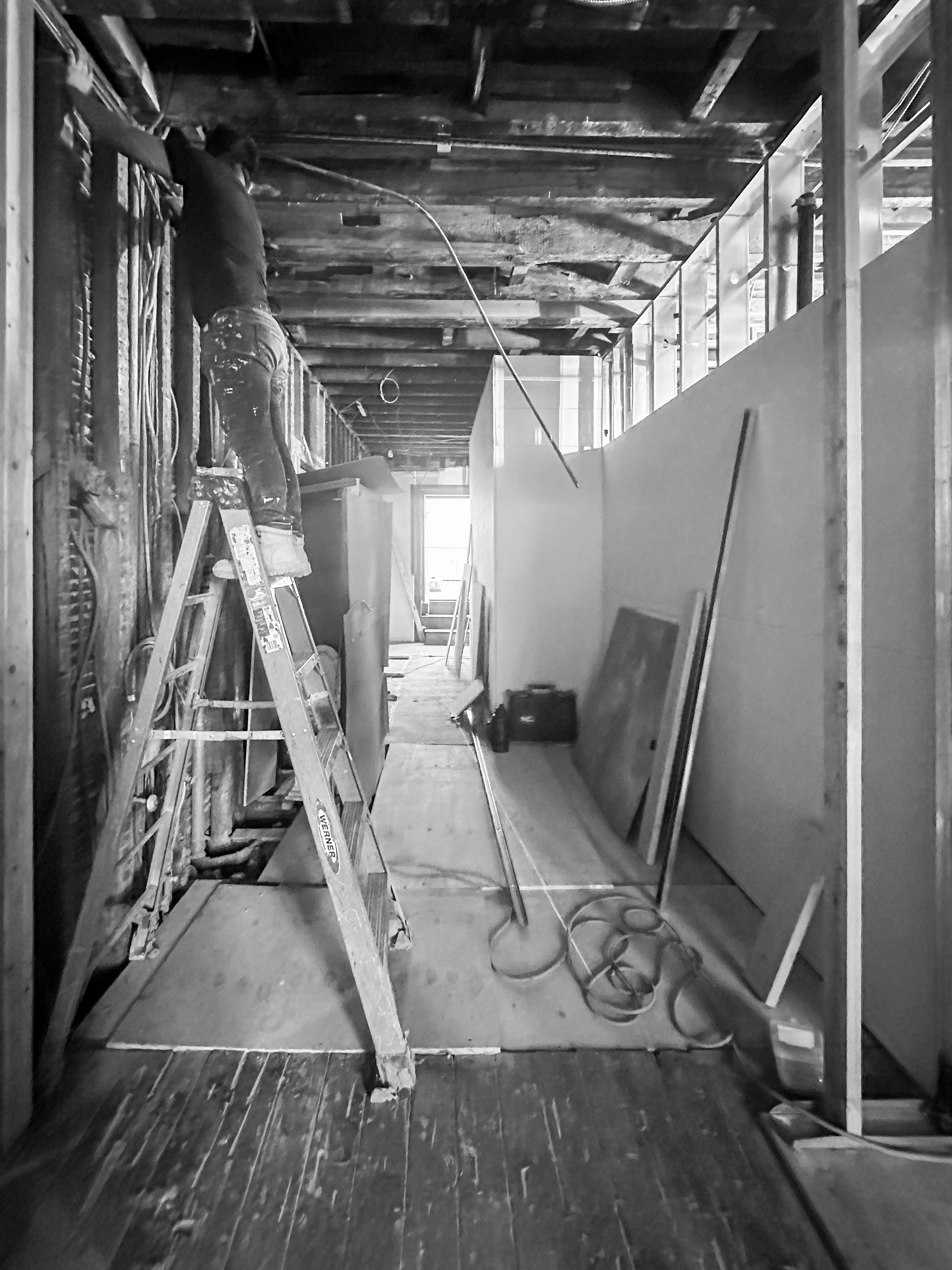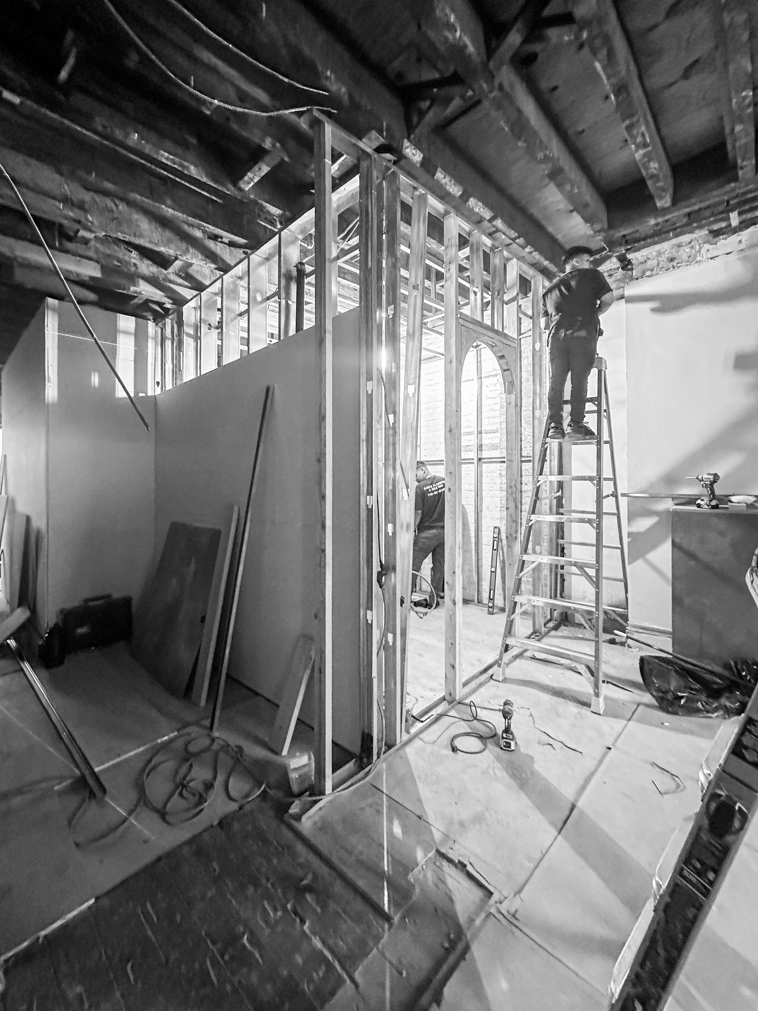 This second-floor interior renovation was tailored to the client’s vision, striking a careful balance between preservation and transformation. Historic features such as the original fireplace and crown molding were thoughtfully retained, while strategic interventions improved functionality and visual coherence. Relocating the bathroom, dining area, and entry door allowed for a more intuitive spatial flow. Softened corners were introduced to ease transitions and bring a contemporary calm to the home. Custom millwork adds utility and character, complementing the restrained palette of warm finishes and clean lines. The result is a space that feels refined and cohesive, where traditional detailing meets modern sensibility in support of the client’s lifestyle.