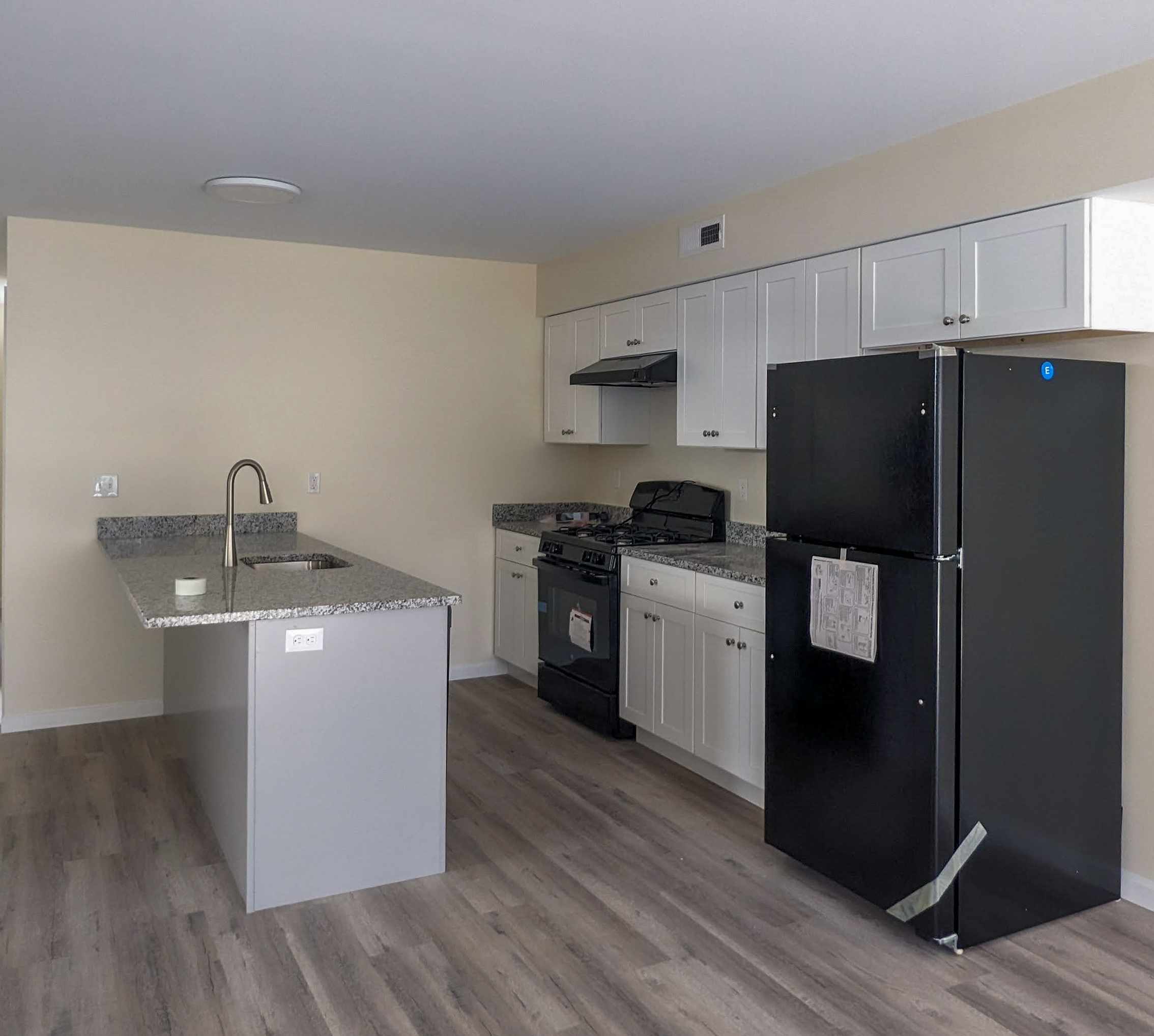 This comprehensive renovation transforms an urban residence into a modern sanctuary, merging clean lines and contemporary finishes with functional design. The heart of the home, the kitchen, features sleek cabinetry and state-of-the-art appliances set against natural wood accents that evoke warmth and style. The open plan layout ensures that natural light floods the space, enhancing the airy feel and connecting the living areas seamlessly for a fluid living experience.