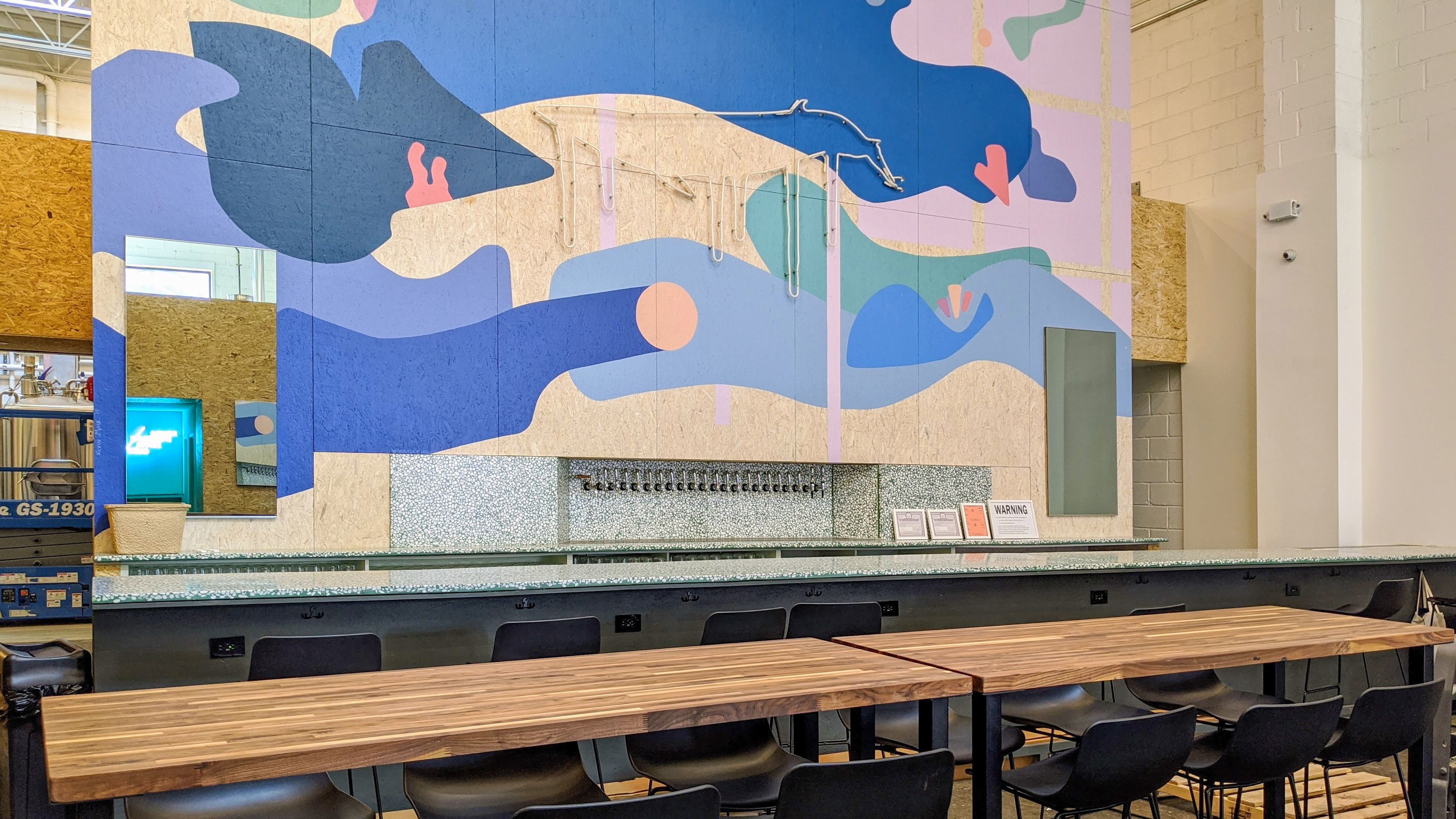 The screen wall is a standout feature, offering a modern and stylish way to separate spaces while maintaining an open and airy atmosphere. Its translucent quality allows light to pass through, creating a bright and welcoming environment. This design element not only adds to the visual interest but also enhances the flow of natural light throughout the office.
